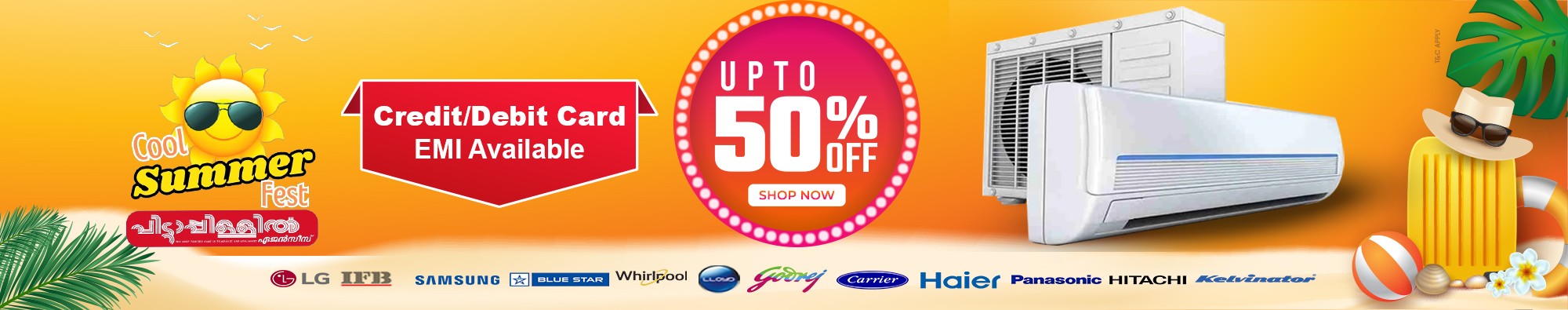 Are the scorching summer sun beating down, Pittappillil Agencies brings you the coolest deal on air conditioners inKerala! With temperatures soaring, there's no better time to invest in your comfort and beat the heat with our exclusive offer. For a limited time, get Rs. 1000 off instantly when you purchase select AC models online using coupon code SMR10.