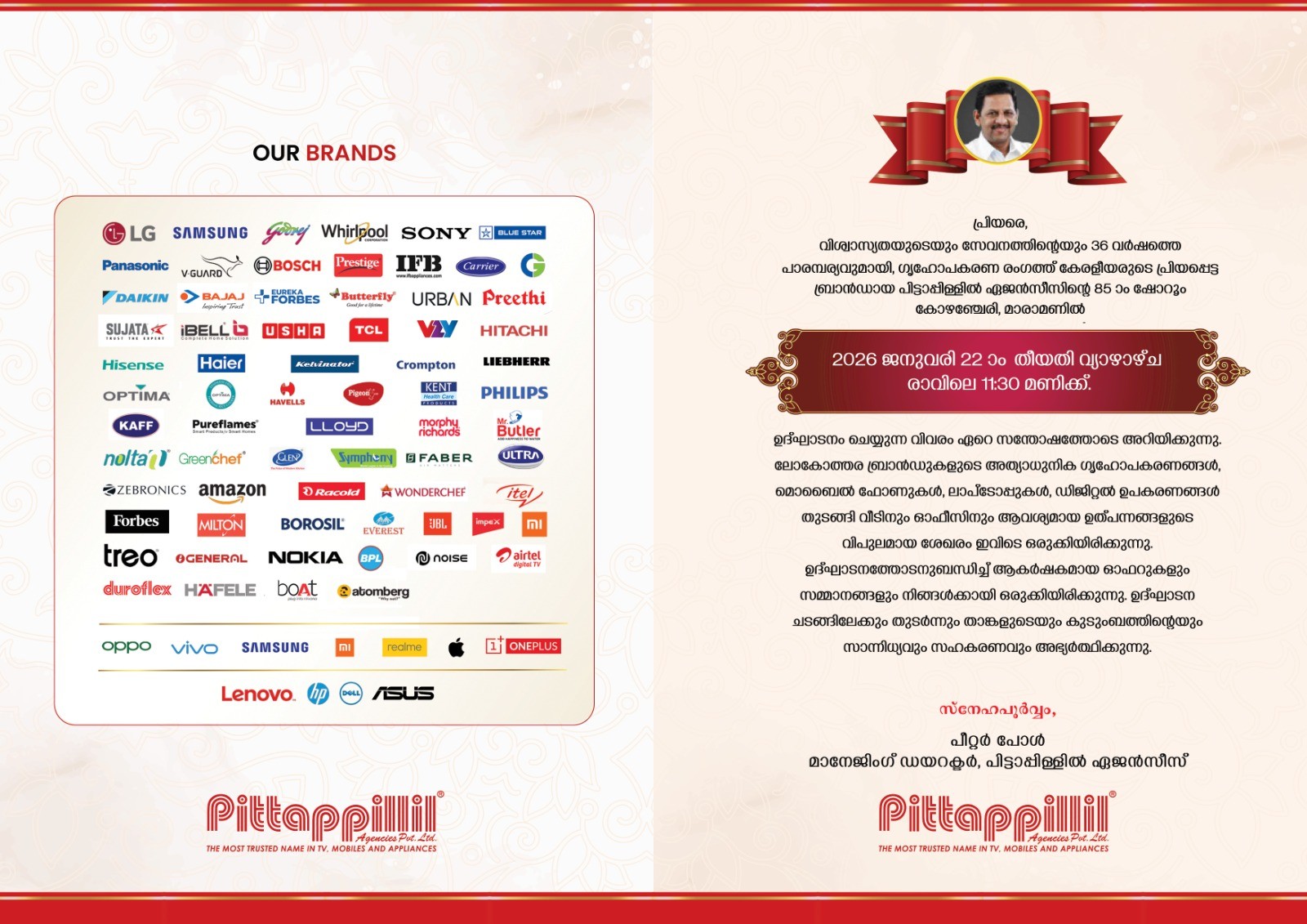 Apart from warranty provided by manufacturers, Pittappillil provide extended warranty for a