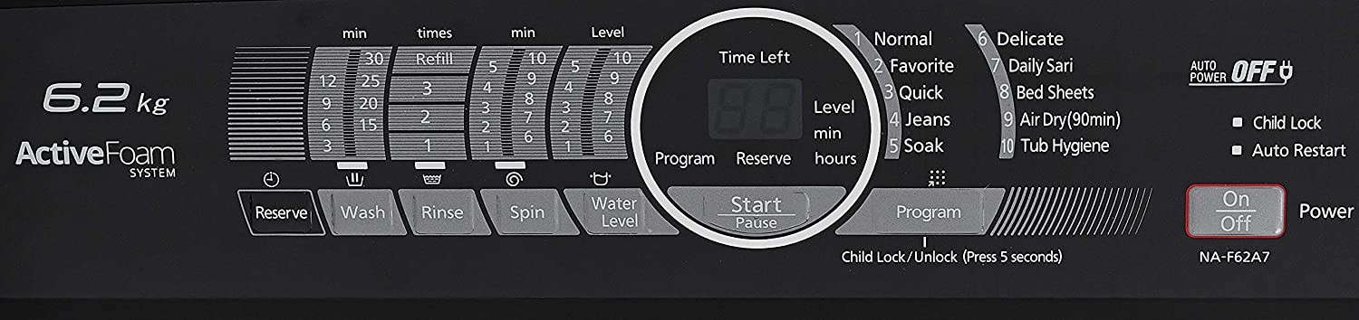 • Programs Normal, Favorite, Quick, Jeans, Soak, Delicate, Daily Sari, Bed Sheets, Air Dry(90 min), Tub Hygiene